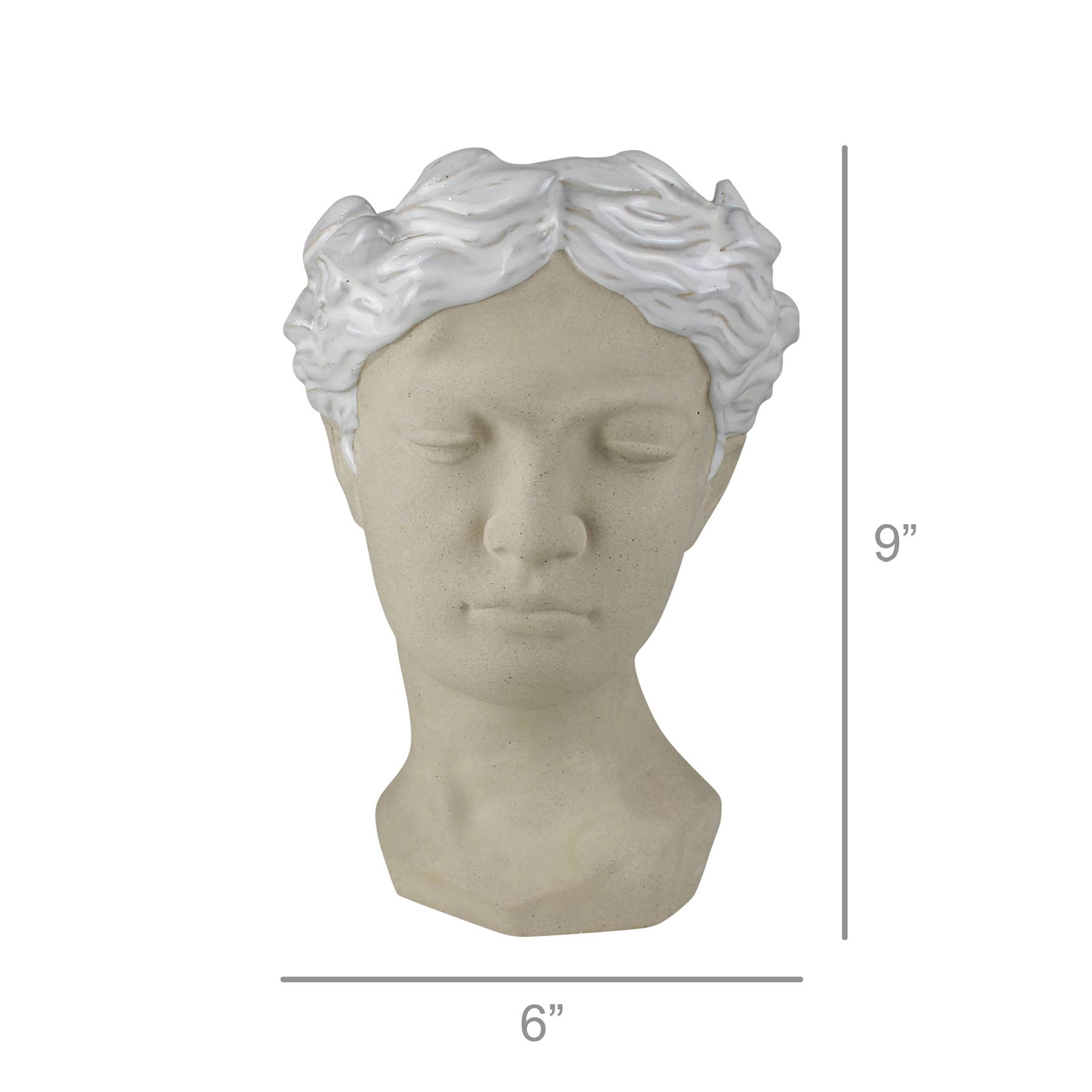 Beautiful from every angle. Bisque ceramic facial features and a gloss white up-do, this distinctive ceramic vessel is ready for her floral moment.