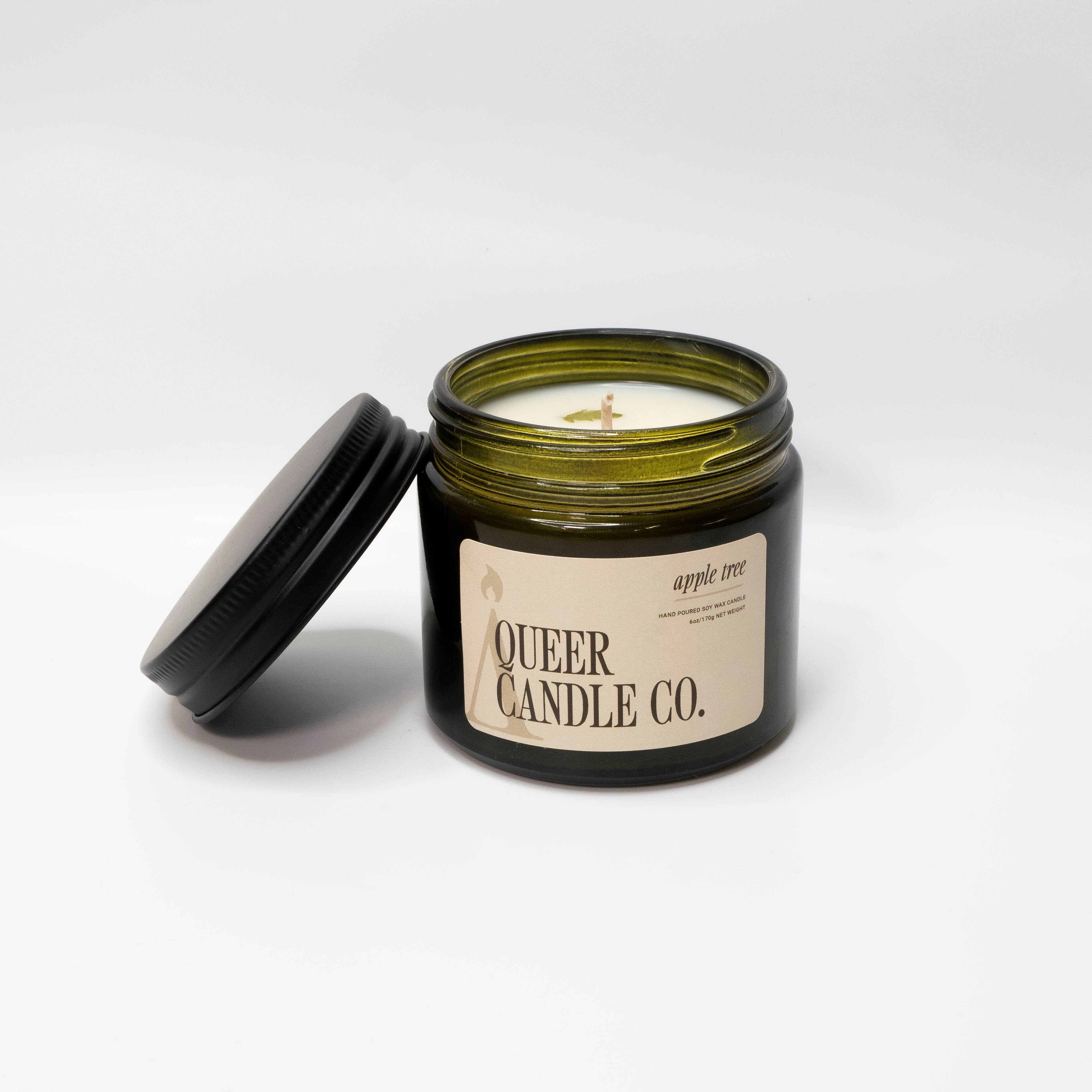 Our Apple Tree soy wax candles are hand poured, clean burning, and made in recyclable and reusable containers right in our workshop. This listing is for our green glass jar, featuring a cream side label and matte black lid. This listing is for a seasonal scent which will be available from late August through late January. Apple Tree: - Crisp and inviting fall scent - highlights of apple with warm notes of cinnamon and wood - Topped with fragrant apple slices & apple blossoms - A slightly earthier twist on the classic fall scent Burn times: 6 oz: 45 hours 13 oz: 100 hours
