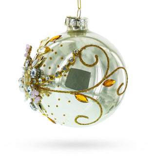 Exquisite Jeweled Flowers Adorning- Glass Ornament