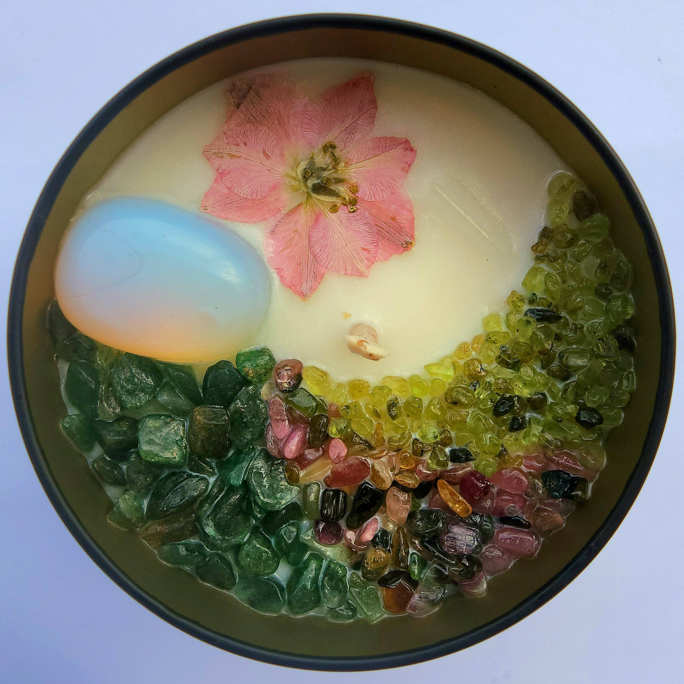 *All candles come with a mini selenite wand (embedded in the candle) to keep all stones within the candle cleansed and charged.*