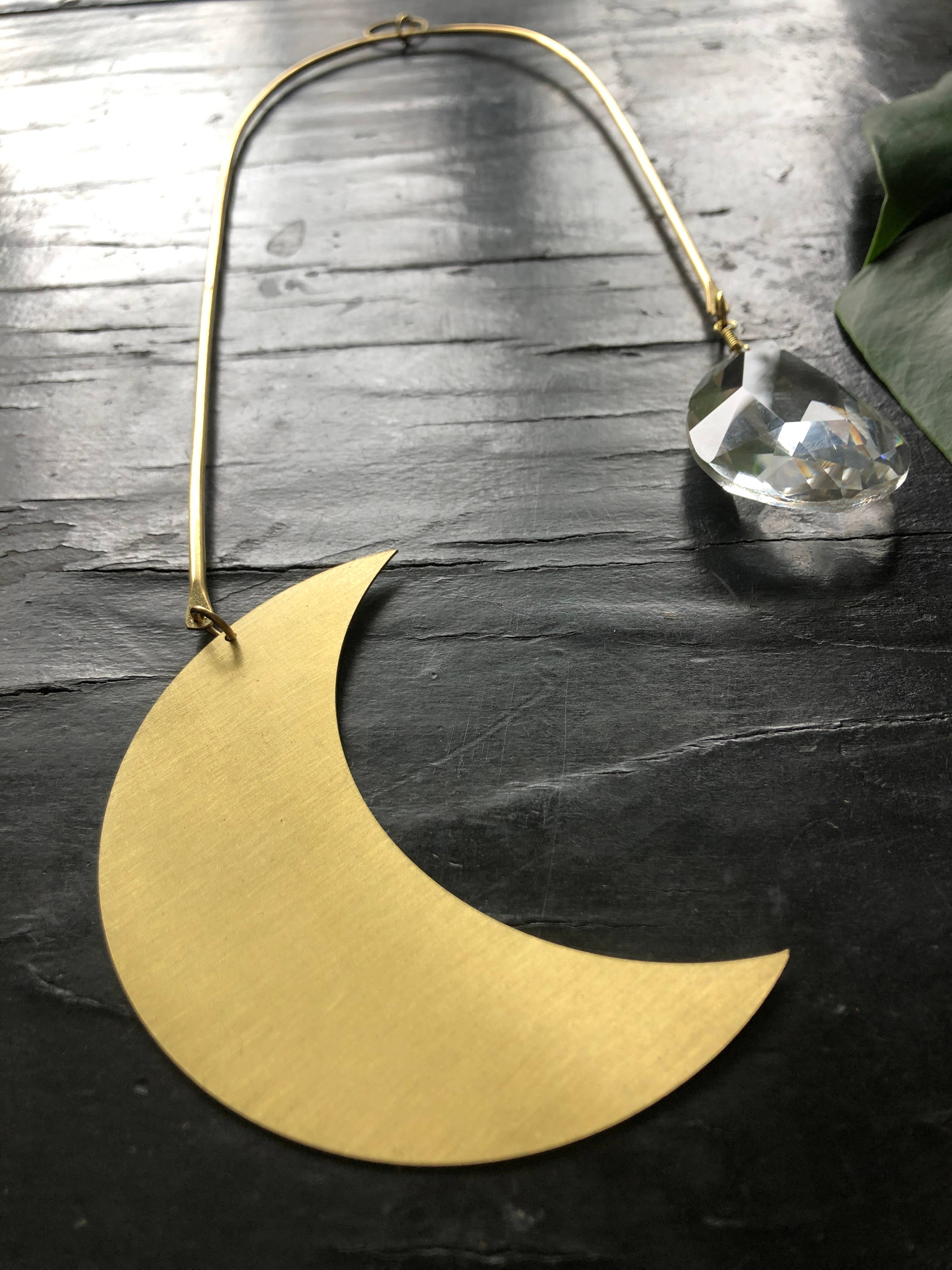 Artisan-crafted wall hanging made from hand forged brass wire, brushed brass and vintage faceted crystal. Ready to hang.