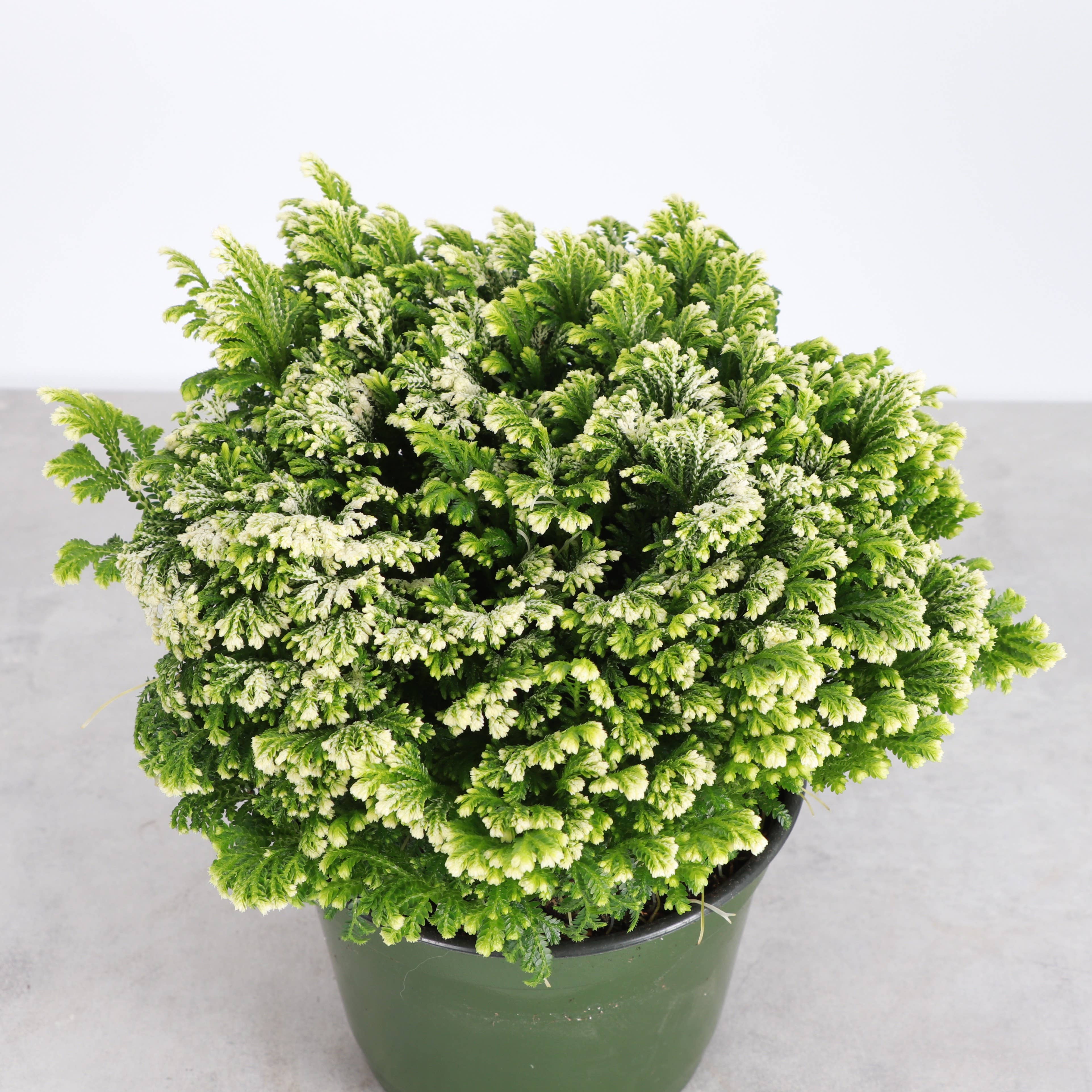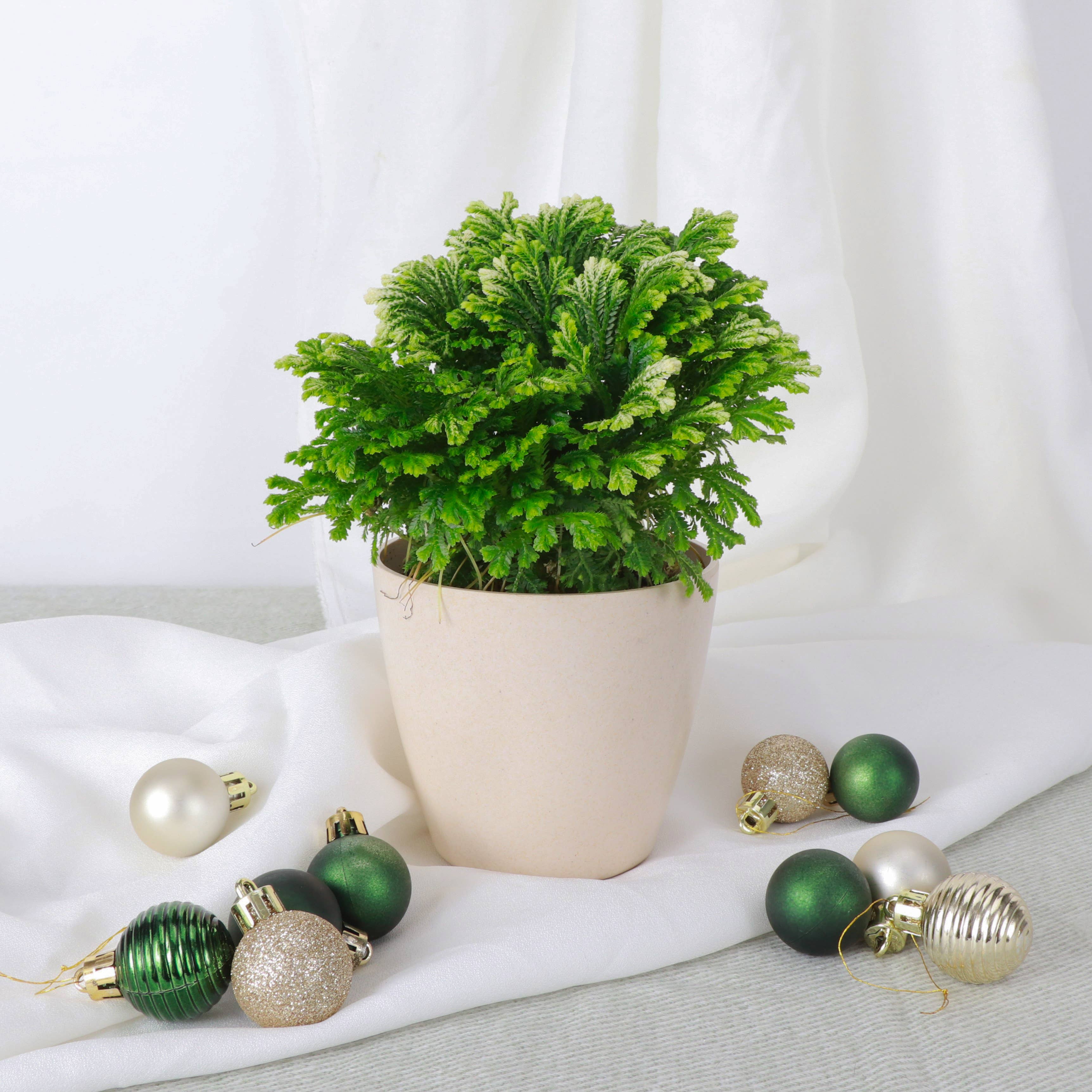 Embrace the cool temperatures of the Holiday Season with a delicate and unique Frosty Fern Plant! This fern gets it's common name from the distinctive white color of it's new growth, giving the appearance of the plant being touched by frost. This fern is safe for pets and non toxic. Botanical Name: Selaginella. Thrives in medium to indirect bright sunlight. Keep out of direct sunlight. This plant will arrive in a plastic growers pot with drainage holes. Please note the images are a representation of the plants available, not the exact plant you will receive. All plants are unique; we will handpick and carefully package the best of our selection for each order! Soil may shift during shipping. Please reach out within 3 days of receipt with any issues.