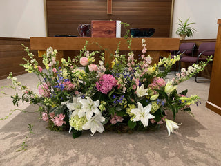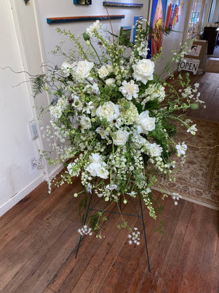 Recent examples of funeral arrangements, wreaths and sprays. Each design is unique and crated with care. Green floristry techniques are utilized as much as possible limiting floral foam.