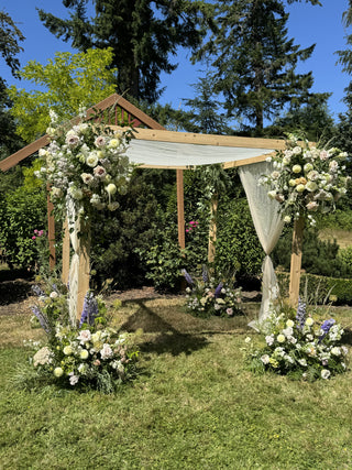 Our experienced event florists bring your vision to life through thoughtfully designed floral and decor. As Vashon's premier wedding and event florist we can fulfill all your floral needs including; arches & hanging installations, aisle decor, bridal party bouquets, boutonnieres & corsages, flower crowns, centerpieces, and more.